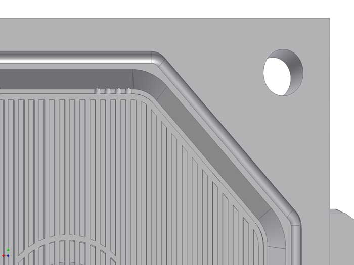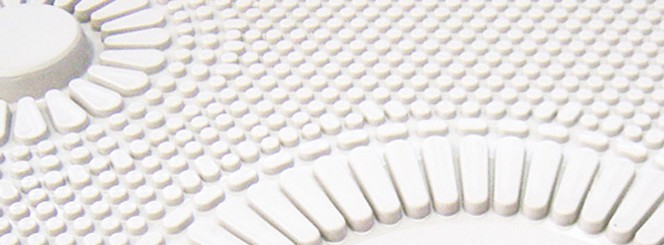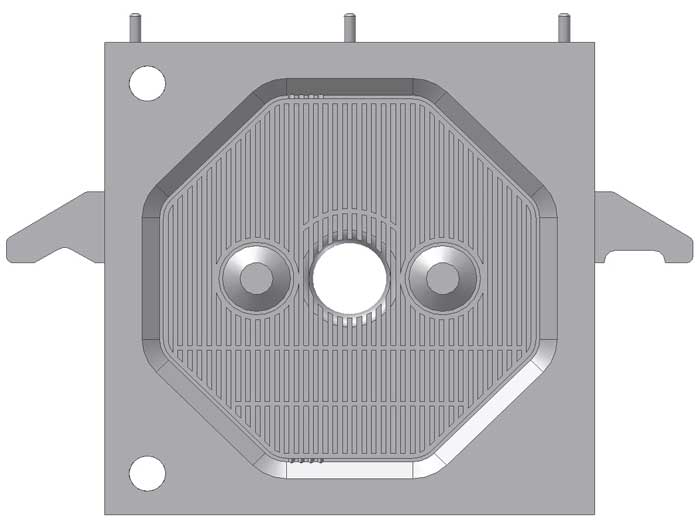 Die Drainagefläche ist entweder mit Noppen oder mit Rillen ausgestattet um das Filtertuch zu stützen und dem Filtrat den Weg zum Abfließen zu gewähren.